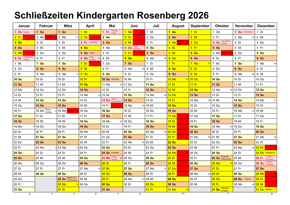 Freitag, den 03.07.2026, von 8:00 Uhr - 14:00 Uhr Mittwoch, den 29.07.2026, am Vormittag Wird noch bekannt gegeben | Ausflug der Großen Schulranzen- und Rauswurftag mit den Kindern Abschlussfeier mit Andacht |